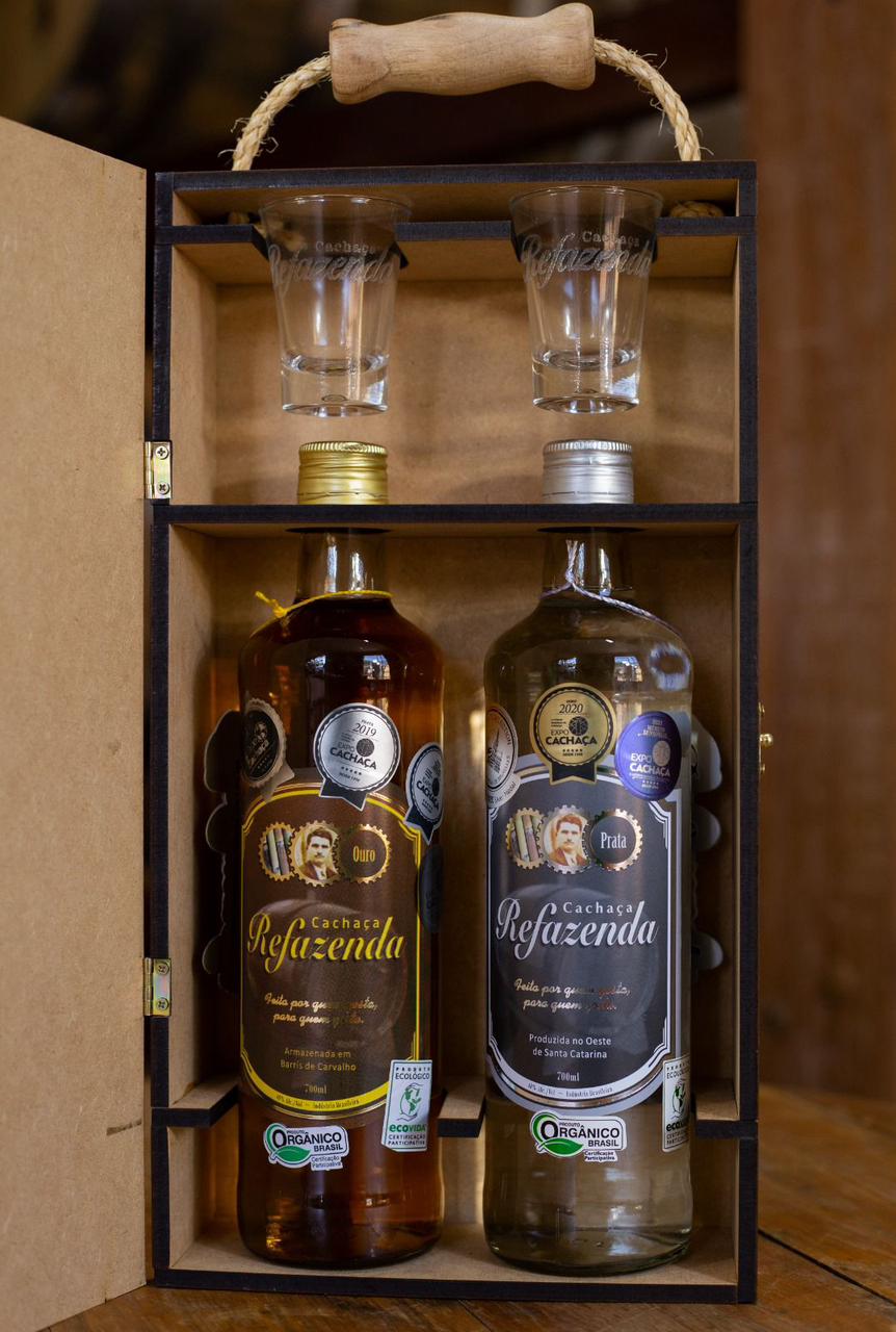 2 garrafas de Cachaça Refazenda 700 ml, sendo uma Ouro e outra Prata;